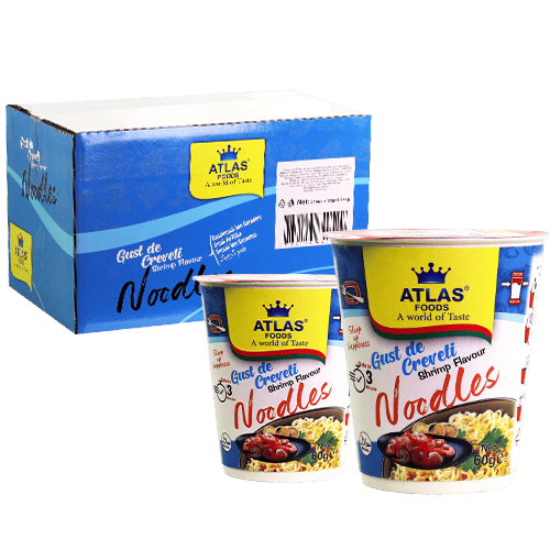نودلز فورية بنكهة القريدس بكوب جاهز خلال حوالي 3 دقائق، خيار ممتاز لوجبة سريعة وسهلة التحضير.