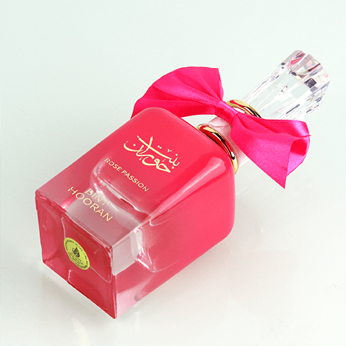عطر نسائي (أو دو بارفان) من أرد الزعفران باسم بنت حوران روز باشن، حجم 100مل، رائحته فاكهية حلوة مع لمسة زهرية وقاعدة دافئة فانيلا/عنبر.