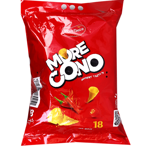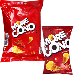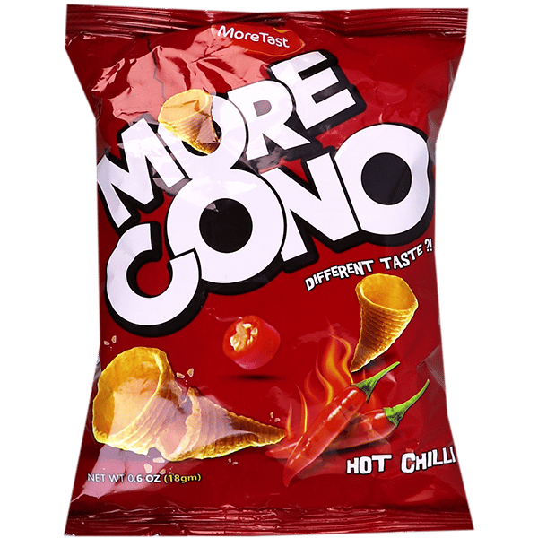 وجبة خفيفة مقرمشة على شكل أقماع بطعم الفلفل الحار من مورتيست. مصنوعة من البطاطس وزيت نباتي وتوابل الفلفل الحار. مناسبة لعشاق النكهات الحارة!