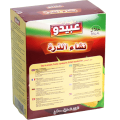 نشاء الذرة عبيدو 500غ يُستخدم لتكثيف الشوربات والصلصات وتحضير الحلويات، ويفضل إذابته أولاً بقليل من سائل بارد ثم إضافته للقدر مع التحريك.