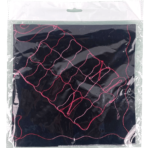 لعبة برسيـس دمشقية تقليدية بلوحة مخملية سوداء مطرزة بالخيوط الحمراء مع بيادق معدنية وقطع من أصداف الكاوري، مثالية للجلسات العائلية والسهرات الشامية.