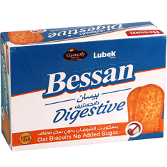 بسكويت دايجستف بالشوفان بدون سكر مضاف، مقرمش ومقسم إلى 12 باكيتات داخلية (كل باكيت قطعتين) مناسب للدوام/المدرسة وللتسالي الخفيفة.