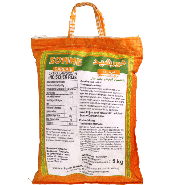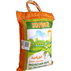 أرز إندي طويل الحبة إكسترا من سونن، عطري وطري بعد الطبخ. مثالي للكاري الهندي، البيرياني، الپيلاو أو كطبق جانبي. ما هي أفضل طريقة لطهي الأرز الإندي؟ اغسليه جيداً واطبخه بنسبة 1:1.5 ماء لمدة 10-15 دقيقة لنتيجة مثالية. هل يصلح للرز مع اللحم؟ نعم يعطي قواماً رائعاً ومذاقاً شهياً مع اللحوم والخضار. ما الفرق عن الأرز العادي؟ حباته أطول وأقل لصقاً، مثالي للوجبات الآسيوية. كيف أحضره للبيرياني؟ انقعيه 30 دقيقة ثم اطبخه مع التوابل لنكهة أصيلة. هل مناسب للعائلات الكبيرة؟ نعم، كيس 5كجم يكفي لعدة وجبات.