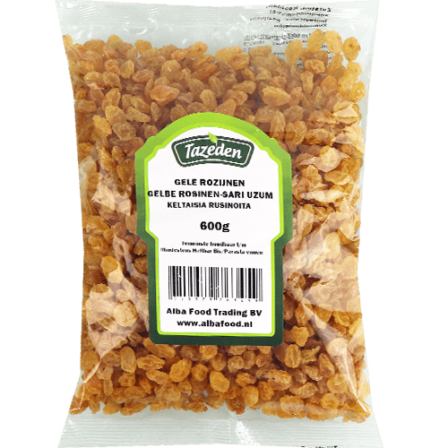 هل هو زبيب ذهبي؟ نعم مذكور “Gele rozijnen / Golden raisins”.