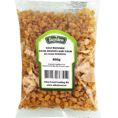 زبيب ذهبي من تازدن وزن 600غ، طعمه حلو ومناسب للتسالي ولإضافته للحلويات والطبخ.