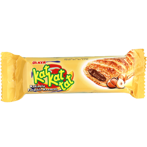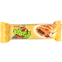 سناك طبقات مقرمش محشو بكريمة الكاكاو والبندق من أولكر، مناسب كسناك سريع أو مع القهوة والشاي.
