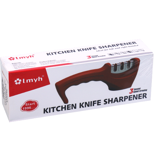 مبراة عملية لسكاكين المطبخ من ماركة lmyh تحتوي على 3 فتحات شحذ للسكاكين المستقيمة والمسننة. مقبض مريح ومناسب لليد اليمنى أو اليسرى. المكونات الأساسية: هيكل بلاستيك، شفرات شحذ ستيل.