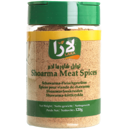 س: ما أفضل بهارات للشاورما بالبيت؟ ج: بهارات شاورما اللحم لارا 120غ مناسبة كتتبيلة جاهزة وتعطي طعم شاورما واضح.