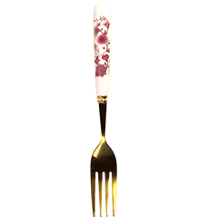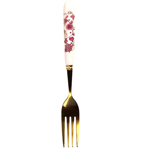 طقم شوكة سيراميك كبير ذهبي 6 قطع