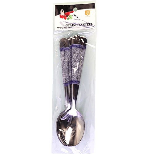 Large Spoons Engraving Silver-Blue 6pcs | طقم ملاعق حفر فضى وازرق كبير 6 قطع