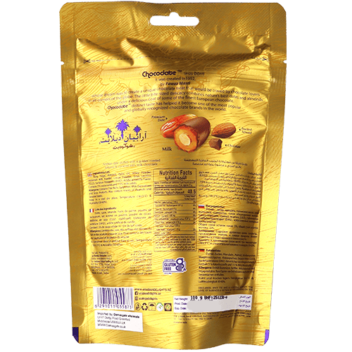 تمر محشي لوز مغطى بشوكولاتة الحليب أرابيان ديلايتس 100غ