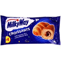 كرواسون هش مخبوز محشو بكريمة ميلكي واي المكونة من مزيج من كريمة الحليب وكريمة الشوكولاتة، كل قطعة مغلفة على حدة لتكون وجبة خفيفة حلوة مناسبة للمدرسة أو العمل أو الرحلات.