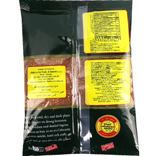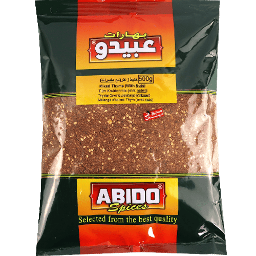 زعتر عبيدو المشكل بالمكسرات بوزن 500غ مناسب للمناقيش والوجبات السريعة وإضافة نكهة شامية غنية للأكل اليومي.