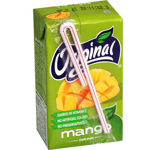 المكونات الأساسية: ماء، سكر، عصير أو مركز مانجو، نكهة مانجو مطابقة للطبيعة، فيتامين سي، منظمات حموضة ومواد حافظة.