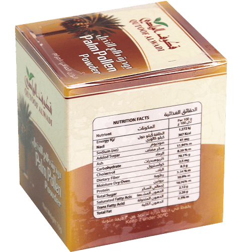 المكونات الأساسية: طلع نخيل التمر النقي، غني بالبروتينات الطبيعية والأحماض الأمينية والفيتامينات والمعادن ومضادات الأكسدة.
