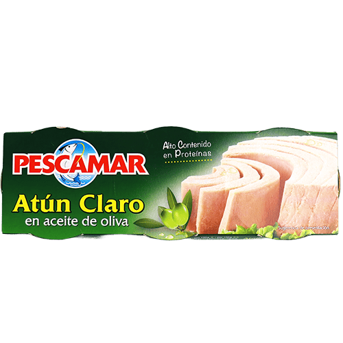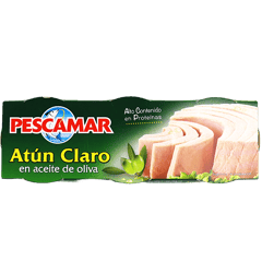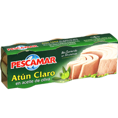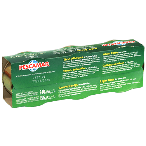 تونة فاتحة محفوظة بزيت الزيتون ضمن 3 حصص (52غ مصفّى لكل علبة)، عملية للسلطات والسندويشات والمعكرونة والوجبات السريعة.