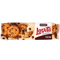 بسكويت مقرمش بنكهة الكاكاو من مجموعة لوفيتا من روشن، مخبوز مع قطع تغطية كاكاو وشوكولاتة ليمنح طعم شوكولاتة غني مثالي مع الشاي أو القهوة. المكونات الأساسية: دقيق قمح فاخر، سكر، دهن نباتي، قطع كاكاو وتغليف (سكر، دهن حلويات، مسحوق كاكاو منخفض الدسم، مستحلب ليسيثين الصويا، نكهات)، مسحوق كاكاو منخفض الدسم، حليب كامل الدسم بودرة، مواد رافعة، نكهات، ملح، وقد يحتوي على فول سوداني وبندق ولوز وسمسم.