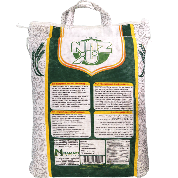أرز بسمتي سوبر 1121 سيلا من نجزو، مسبوك جزئياً لاحتفاظ بالمغذيات وحبوب طويلة جداً. ما هي أفضل طريقة لطهيه؟ اغسله واطبخه بنسبة 1:1.75 ماء لـ15 دقيقة. هل مناسب للمندي؟ نعم، يطول ضعف حجمه ويبقى منفوشاً مع اللحم. ما الفرق عن البسمتي العادي؟ أطول حبة وأكثر صلابة بعد الطبخ. كيف للبيرياني؟ انقعه 30 دقيقة مع التوابل لنكهة قوية. هل صحي؟ نعم، يحتفظ بفيتامينات أكثر بسبب السيلا.