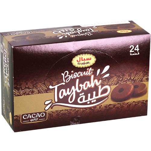 بسكويت طيبة بالكاكاو اللذيذ من سيبال بنكهة الشوكولاتة الغنية. يحتوي على 24 قطعة بسكويت دائرية مغلفة بشكل فردي مع مركز طري وطبقة كاكاو. مثالي للمشاركة أو كوجبة خفيفة حلوة. المكونات الأساسية: دقيق القمح، سكر، مسحوق الكاكاو، زيوت نباتية، بيض.