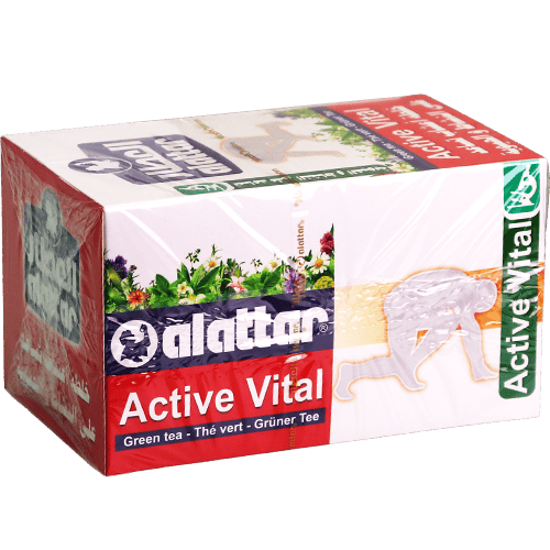 خلطة أعشاب مع شاي أخضر من العطار، 12 ظرف شاي تساعد على دعم النشاط والحيوية خلال اليوم بإجمالي وزن 15.6غ تقريباً.
