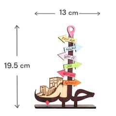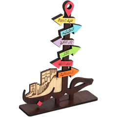 Decorative wooden stand featuring colorful signposts and iconic Aleppo landmarks, size 19.5×13 cm, ideal for shelves, desks, or a Syrian-themed corner at home or in the office. Made from laser-cut wood with printed and painted details, it adds a nostalgic touch and works perfectly as a gift or souvenir for people who love Aleppo.