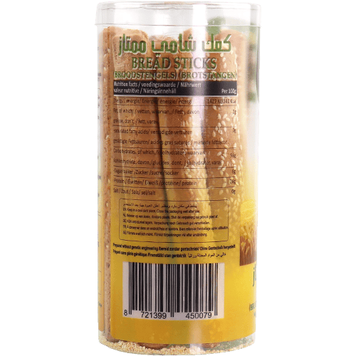 Crispy bread sticks in a handy tube pack, great as a snack or to serve with dips and cheese.