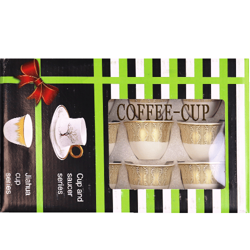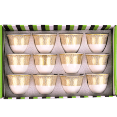 This product is a set of 12 elegant porcelain coffee cups from the Jahua series. Perfect for enjoying Arabic coffee, Turkish coffee, or espresso with friends and family. Made from high-quality ceramic. The set does not include saucers. Main ingredient: porcelain/ceramic.
