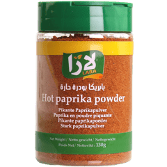 Lara Hot Paprika Powder 130g is a finely ground hot paprika spice with a vibrant red color and a spicy, smoky flavor. Perfect for seasoning meat, grilled dishes, stews, soups, and rice. Adds heat and rich color to any recipe. Ingredients: Hot paprika (Capsicum annuum).