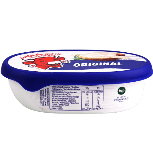 Creamy and smooth original cheese spread from La Vache Qui Rit. Perfect for spreading on bread, crackers or use in cooking. Mild and delicious taste loved by the whole family. Convenient tub packaging for easy use. Main ingredients: cheese, water, milk proteins, butter.