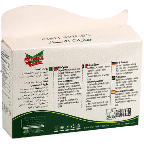 Algota viskruiden is een geurige kruidenmix speciaal voor het kruiden en marineren van vis, die bij het grillen, bakken of frituren een frisse, licht pittige smaak geeft.