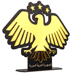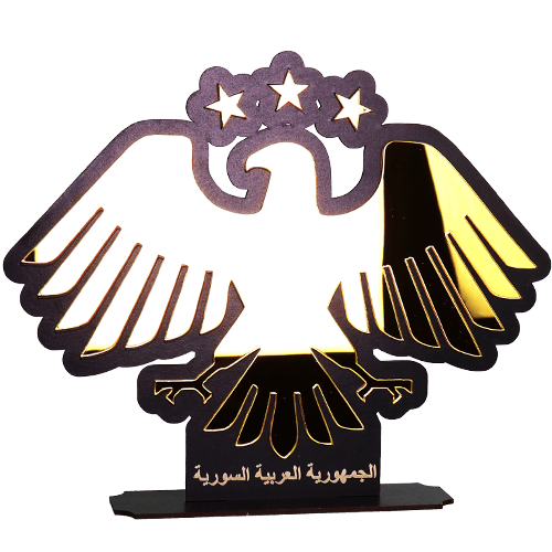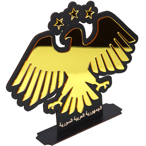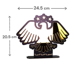 Syrische adelaar flex stand van ca. 24,5 cm hoog als symbolische decoratie, ideaal voor op bureau, plank of tv‑meubel als teken van Syrische trots.